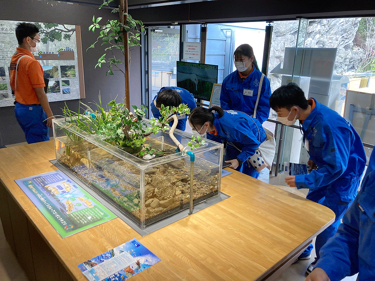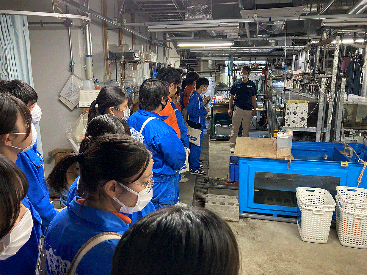 海洋生物飼育学科1年生が相模川ふれあい科学館にONEDAY研修へ行ってきました。相模川水系の魚たちを多く飼育している施設で様々な形の水槽が展示してあり、飼育員の方から一つ一つ解説していただきました。またバックヤード見学では、設備のことなども教えていただきました。