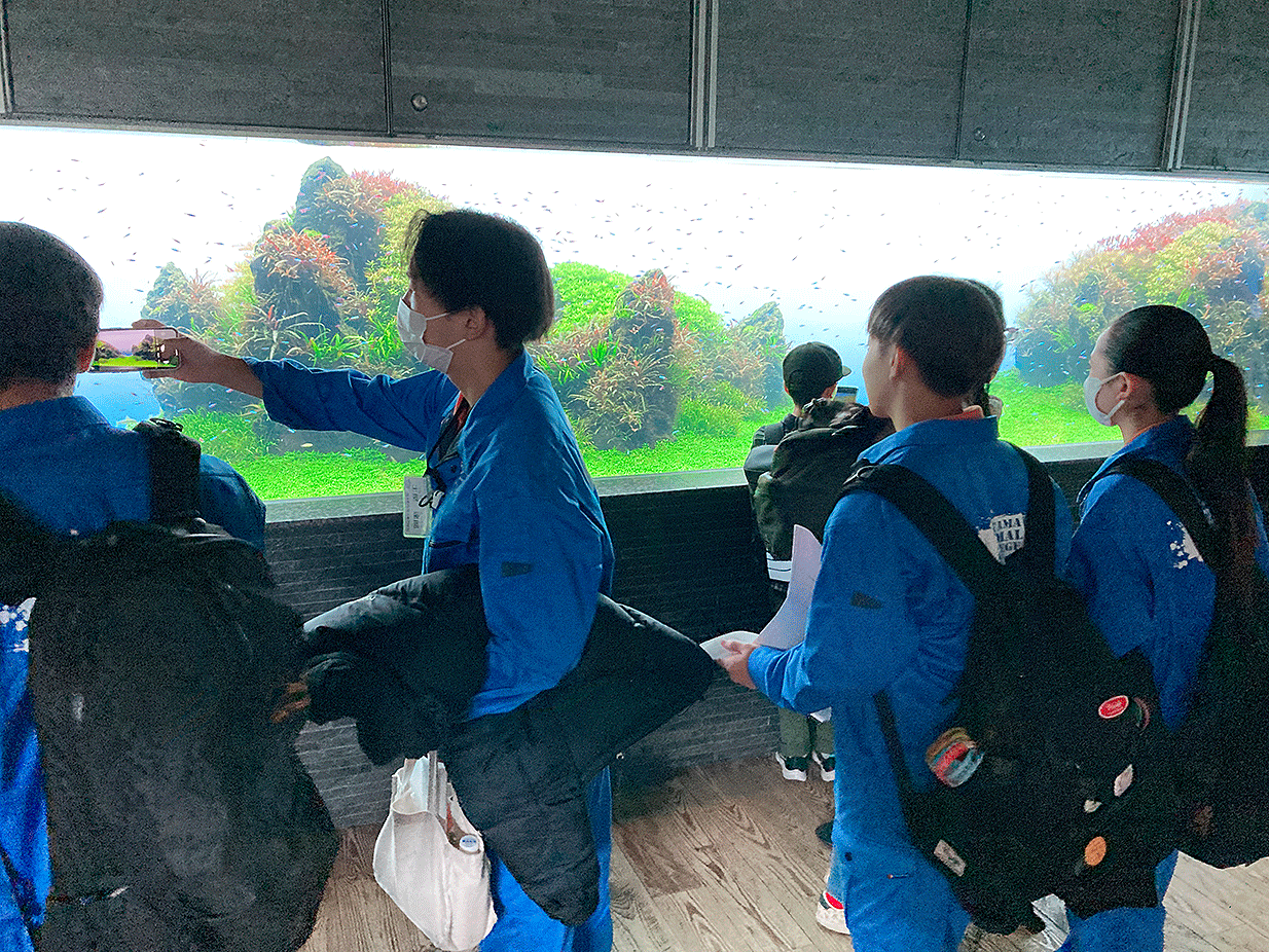 海洋生物飼育学科の2年生がすみだ水族館に研修へ行ってきました。都市型の水族館としてスタイリッシュな展示や直接飼育員からの話を聞くことが出来ました。また、最新レイアウトを近くで興味を持って観察していました。