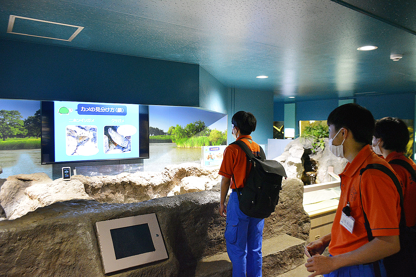 埼玉県の生き物に特化した生き物と、自然を脅かす外来種の紹介など学ぶ点がたくさんありました。飼育課長の藤嶋様よりご講義いただき、水族館の役割や、展示の伝え方など学びました。