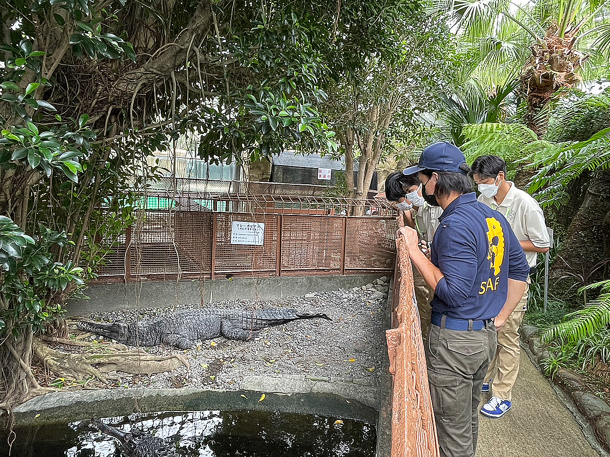 2日目は熱川バナナワニ園へ。飼育課長の浜野様よりワニの生態、飼育管理、繁殖について、アマゾンマナティの飼育管理などについてレクチャーしていただきながら園内見学を行い、有意義な研修となりました。
