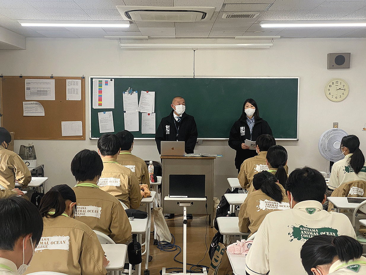 2月12日(月)に開催されます「さいたまマラソン」に本校の学生たちがボランティアで参加させていただくので、説明に来ていただきました。