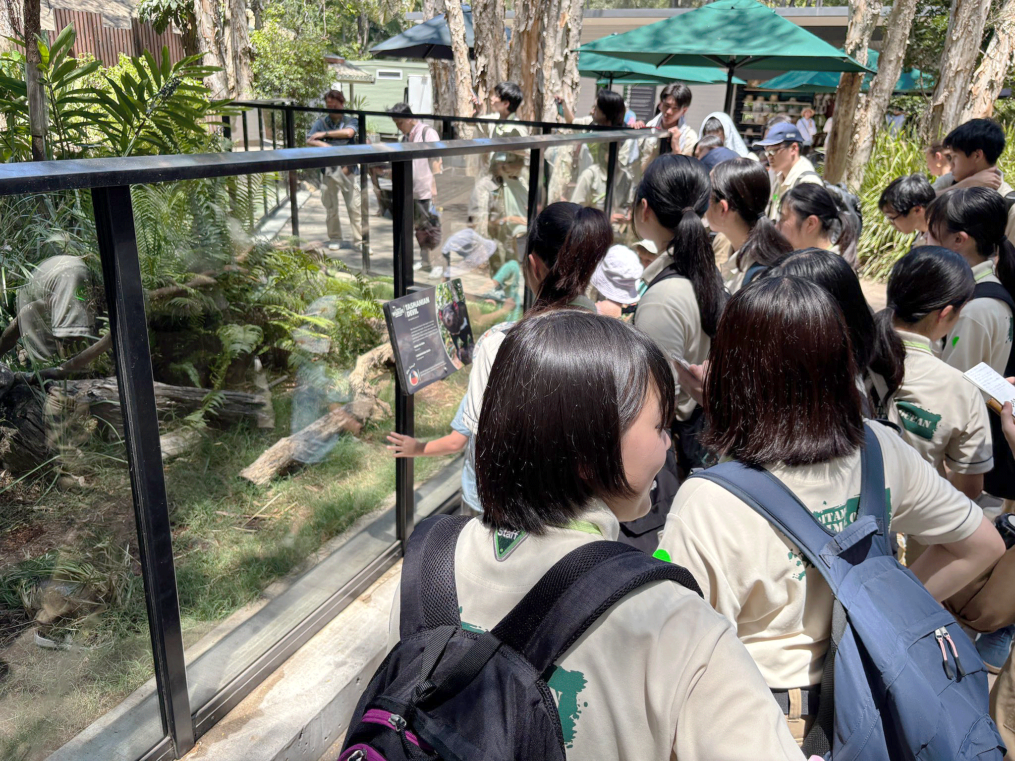 1日目は、両学科分かれての見学。動物飼育学科は、シドニー動物園へ。室内型の園内を見学しながら、動物の展示、福祉への取り組みなどを学びました。