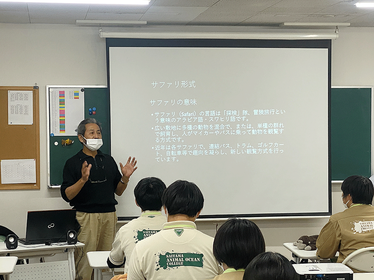 特別講義として、今回は富士サファリパークより奥田様にお越しいただきました。サファリ形式の特徴など幅広く講義していただきました。