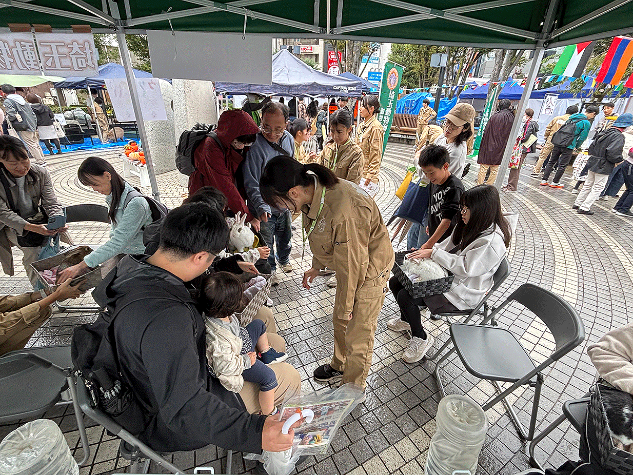 さいたま市大宮区民ふれあいフェアに本校の学生が参加させていただきました。:10月25日(土)開催地:大宮西口鐘塚公園(動物飼育学科)