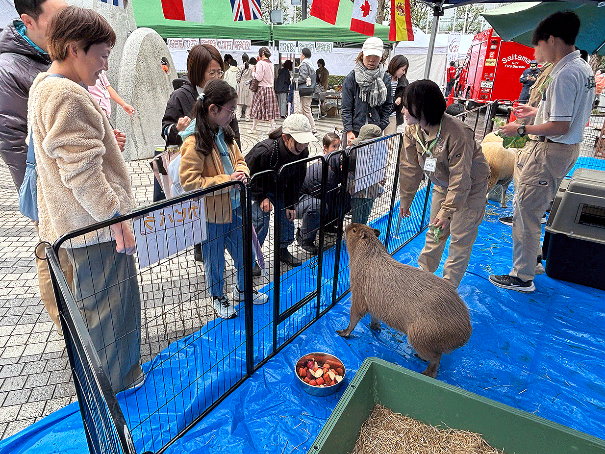さいたま市大宮区民ふれあいフェアに本校の学生が参加させていただきました。あいにくの雨模様でしたが、沢山の方々にお越いただき、動物とのふれあいを楽しんでいただいたり、ボランティアスタッフとしても参加させていただきました。