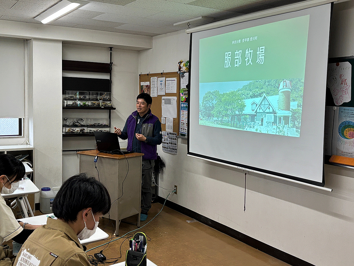 特別講義として、今回は服部牧場より浅見様にお越しいただきました。服部牧場について、生産牧場についてなどを講義していただきました。