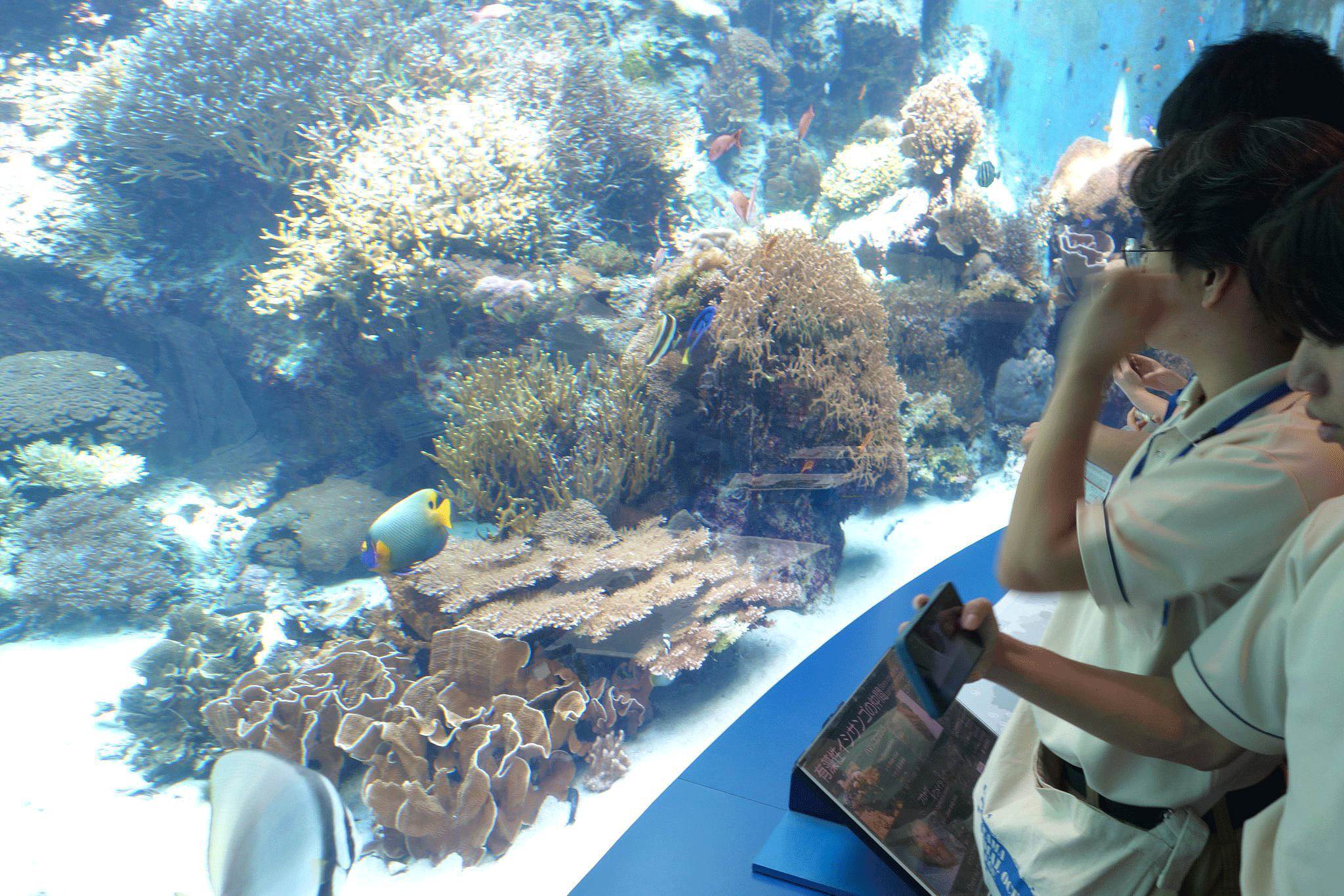 3日目の午後、海洋生物飼育学科は国際海洋環境情報センターへ伺いました。貴重な資料を見させていただき、沖縄の海の環境や、サンゴ、深海について実験を交えながら、教えていただきました。