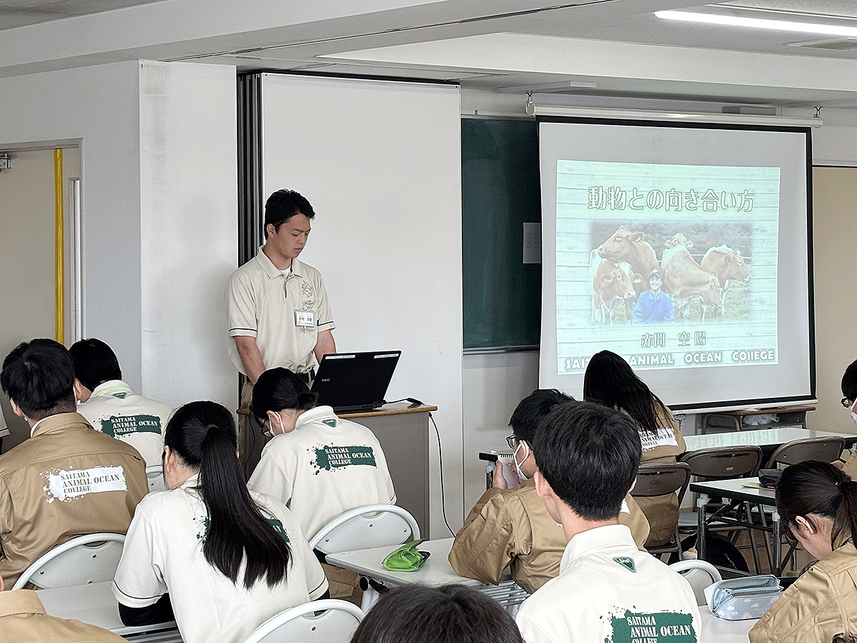 新入生に向けて2年生からのレクチャーを行いました。:4月14日(月)開催地:当校(動物飼育学科・海洋生物飼育学科)